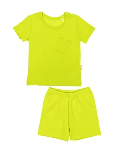 Świetna propozycja na ciepłe dni – letni komplet dla chłopca w żywym, limonkowym kolorze. Uszyty z certyfikowanych materiałów, które są bezpieczne i delikatn...