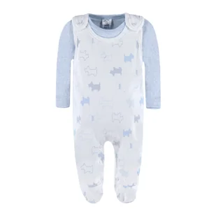 Chłopięcy komplet śpioch + bluzka z długim rękawem, który idealnie sprawdzi się dla każdego chłopca w pierwszych miesiącach życia. Śpioch jest w białym kolor...