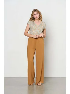 Co Woman Bluzka "Lucia" w kolorze miętowo-jasnobrązowym