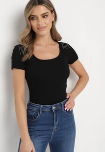 Czarna Bawełniana Bluzka z Ozdobnymi Pagonami i Krótkim Rękawem Maelwina