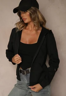 Czarna Rozpinana Bluza z Kapturem Bawełną i Sznurkami Viltara