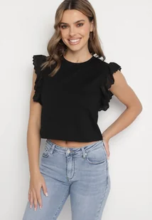 Czarna Bluzka z Bawełny Ozdobiona Haftem Nalawen