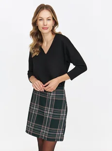 Bluzka damska dostępna w kolorze czarnym TSKW24BLK631699X00. Modelka ma 177 cm wzrostu i prezentuje rozmiar 34.
