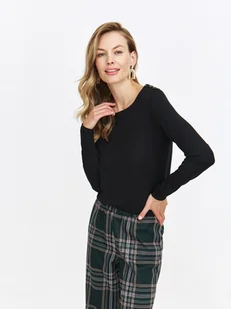 Bluzka damska dostępna w kolorze czarnym TSKW24BLK158099X00. Modelka ma 177 cm wzrostu i prezentuje rozmiar 34.
