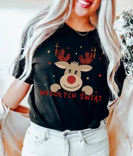 czarna damska koszulka z reniferem na święta