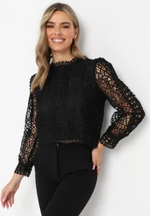 Czarna Koronkowa Bluzka z Długim Rękawem Zalikame