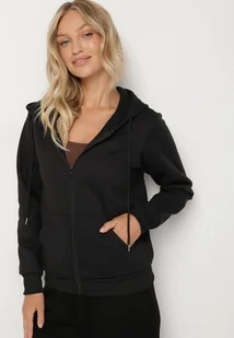 Czarna Rozpinana Bluza z Kapturem Bawełną i Sznurkami Viltara
