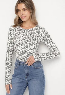 Czarno-Biała Bawełniana Bluzka z Literowym Nadrukiem Jasotila