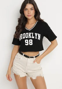 Czarny Bawełniany T-shirt z Napisem Nitanelia