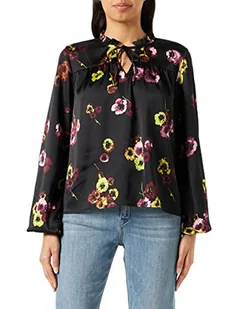 Damska bluzka KAFFE Frilled Neck Długi rękaw drukowany, Czarny Głęboki/Zielony Kwiat Nadruk, 32