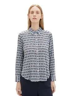 Damska bluzka TOM TAILOR ze wzorem i wywiniętymi rękawami, 33983-niebieski brązowy geometryczny nadruk, 40