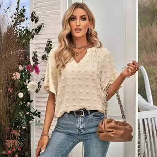 Damska bluzka z ozdobnymi elementami - Beżowy M