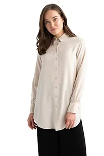 DeFacto Damska bluzka z długim rękawem, koszula z guzikami, do noszenia na co dzień, L. beżowy, M