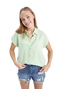 DeFacto Damska bluzka z krótkim rękawem, koszula z guzikami, do noszenia na co dzień, miętowy, S