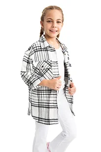 DeFacto Dziewczęca bluzka z długim rękawem, koszula z guzikami, do noszenia na co dzień, czarny, 9-10 Lata