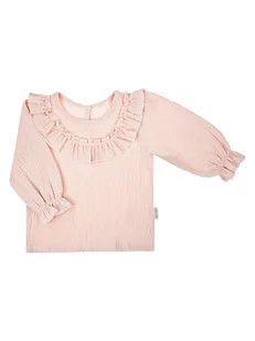 Wyprodukowano w Polsce Elegancka bluzeczka z długim rękawem dla dziewczynki. Wykonana z pudrowej muślinowej tkaniny, w skład której wchodzi 100% bawełny. Prz...