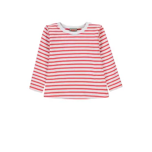 Dziewczęca bluzka z długim rękawem w paki biało czerwone, okrągły dekolt wokół szyi z zatrzaskiem na ramieniu