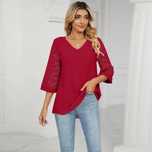 Elegancka bluzka damska z koronkowymi rękawami - Czerwony XXL