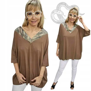 ELEGANCKA TUNIKA WĘŻOWY POŁYSK luźna bluzka bawełna serek Luźna bluzka z dekoltem V (serek) ozdobiona połyskującym wzorem wężowym! Dzięki połyskującym detalo...