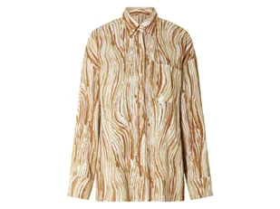 esmara® Bluza damska oversize z zapinanym kołnierzem (34, Wzorzysty biały/beżowy)