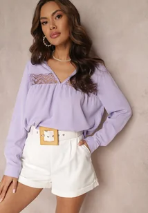 Fioletowa Bluzka z Haftem i Długim Rękawem Khodi
