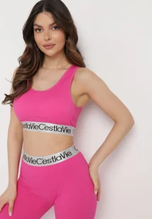 Fuksjowy Biustonosz Top Sportowy Prążkowany z Ozdobną Gumą Fanelli