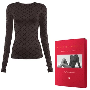 Bluzka Gatta Seamless Monogram to damska bluzka z długim rękawem, która powstała we współpracy świetnej polskiej marki GATTA ze znanym, polskim projektantem MACIEJEM ZIENIEM. Model ten jest częścią ekskluzywnej i niepowtarzalnej kolekcji POEM, inspirowanej poezją, paryskimi akcentami oraz pięknem kobiecości. Całą jego powierzchnię zdobi motyw w geometryczne wzory z charakterystyczną sygnaturą projektanta. Model Monogram wyróżnia się unikatowym wzorem oczek przypominających dużą kabaretkę oraz litery ZŃ, będącymi sygnaturą i znakiem rozpoznawczym projektanta - Macieja Zienia. Motyw jest widoczny i wyczuwalny pod palcami.