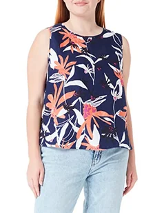 Gerry Weber Damska bluzka lniana bez rękawów z guzikami na plecach, bez rękawów, bez rękawów, kwiatowa, wzorzysta, Niebieski/czerwony/pomarańczowy nadruk, 40