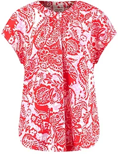 Gerry Weber Damska bluzka ze wzorem z dekoltem na guziki, krótki rękaw, przecięte ramiona, bluzka z krótkim rękawem, wzorzysta, Ecru/biały/czerwony/pomarańczowy nadruk, 36