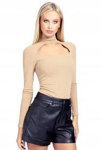 Guess Beżowa Bluzka z Długim Rękawem i Golfem z Wycięciem M Gxb - GUESS