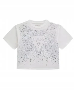 Guess Biała Bluzka Dziecięca Krótki Rękaw Cekiny Bawełna 164/170 Gma