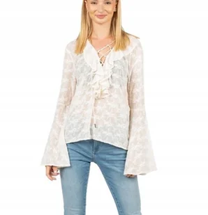 Guess Biała Bluzka z Wiązaniem Falbanami i Długim Rękawem L Gxa - GUESS