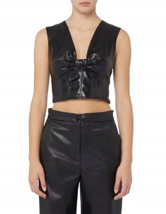 Guess Czarny Top Skóropodobny z Dekoltem i Marszczeniem M Gmb - GUESS