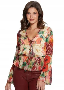 Guess Kwiatowa Bluzka z Wiązaniem i Falbaną Lejąca M Gmb - GUESS