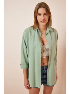 DeFacto Damska bluzka z długim rękawem, koszula z guzikami, do noszenia na co dzień, miętowy, XL