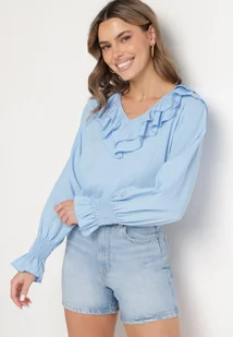 Jasnoniebieska Bluzka z Wiskozą w Rustykalnym Stylu z Falbanami Finlimi