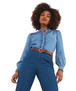 Joe Browns Damska bluzka dżinsowa z falbanką z przodu, niebieska, 12, NIEBIESKI, 38