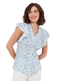Joe Browns Damska bluzka letnia w kwiaty trzepoczące rękawy zapinana na guziki, niebieska, 6, NIEBIESKI, 32