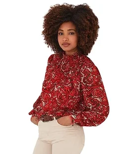Joe Browns Damska bluzka z długim rękawem z nadrukiem Paisely z wysokim dekoltem, wielokolorowa, 6, multi, 32