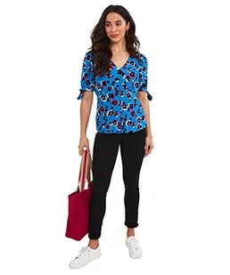 Joe Browns Damska bluzka z odważnym nadrukiem zwierzęcym lampart dekolt w serek wiązana, NIEBIESKI, 34