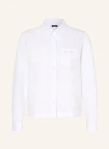 Długie rękawy. Prosty krój. Kołnierz koszulowy. Detal z marką. Mankiety z jednym guzikiem. Z bawełny. Jednolity kolor. Nakładana listwa guzikowa. Wykończenie ozdobnymi kamykami. Gładki materiał. Popelina