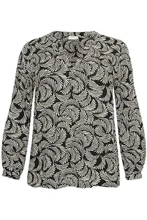 Kaffe Curve Plus Size Damska bluzka z długim rękawem Casual Fit V-Notch Neck, Czarny Głęboki/Antyczny Biały Nadruk