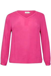 Kaffe Curve Plus Size Damska bluzka z długim rękawem V-Neck Regular Fit Rounded Hem Damska, fuksja czerwony, 42 duże rozmiary