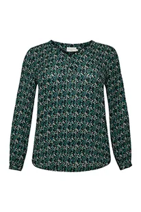 Kaffe Curve Plus Size Damska bluzka z długim rękawem zrelaksowany krój V-Neck Printed, Nadruk zielonego kwiatu i liścia, 44/du?y rozmiar