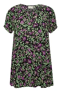 Kaffe Curve Plus Size damska tunika długa bluzka z okrągłym dekoltem, Czarny/Zielony/Fioletowy Kwiat, 48/du?y rozmiar
