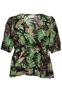 Kaffe Curve Plus Size Damska Wrap Bluzka Pół Długość Rękawy Tying Wstążka Kobiety, Zielony/Czarny/Fioletowy Nadruk palmowy, 44/du?y rozmiar