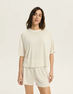 Koszulka damska Ruth Esotiq w kolorze kremowym to model, który zapewnia maksymalny komfort przez cały dzień. Wykonana z przyjemnej w dotyku mieszanki modalu ...