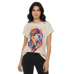 Centralnym punktem koszulki jest efektowna, wielokolorowa grafika przedstawiająca kobiecą twarz otoczoną dynamicznymi, malarskimi plamami barw. To propozycja dla kobiet, które traktują modę jako formę wyrazu i szukają ubrań z unikalnym charakterem. Dlaczego warto wybrać koszulkę Vila? Naturalny skład: Wykonanie w 100% z wysokogatunkowej bawełny gwarantuje, że materiał jest przyjazny dla skóry, pozwala jej oddychać i jest niezwykle trwały. Artystyczny Print: