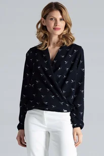 Lekka zwiewna BLUZKA damska w ptaki granatowa M