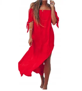 ⭐LETNIA SUKIENKA DŁUGA TUNIKA PLAŻOWA DAMSKA PAREO NA PLAŻĘ ZWIEWNA NARZUTKA ☀️PODSTAWOWY OPIS: Rozmiar uniwersalny Wykonana z szyfonowego materiału Prześwitujący materiał Gumka przy dekolcie Krótki wiązany rękaw Długość maxi Seksowne wycięcia po bokach Kolor czerwony Opis: ☀️ Najmodniejsza tunika/sukienka tego lata! � ? Zwiewna sukienka maxi uszyta z lekkiego, szyfonowego materiału, który pięknie układa się na sylwetce. ✨ Prześwitująca tkanina sprawia, że świetnie nadaje się jako narzutka na plażę, a także do letnich stylizacji na miasto czy wakacyjne spacery. ? Detale, które zachwycają:
